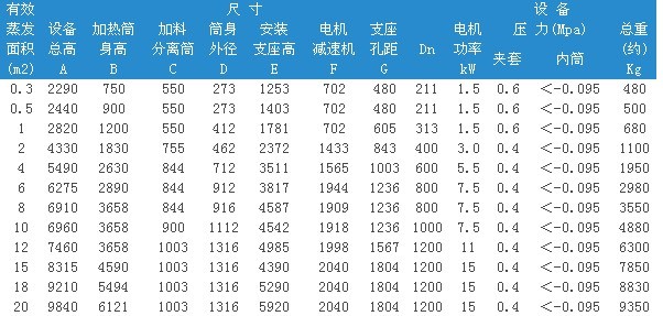 刮板式薄膜蒸發(fā)器參數(shù)表